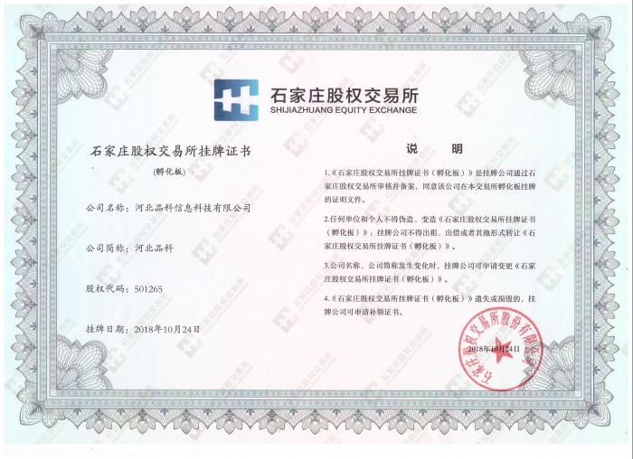 河北品科信息科技有限公司(股權代碼501265)成立于2012年,是一家深受歡迎的教育信息化綜合服務提供商。