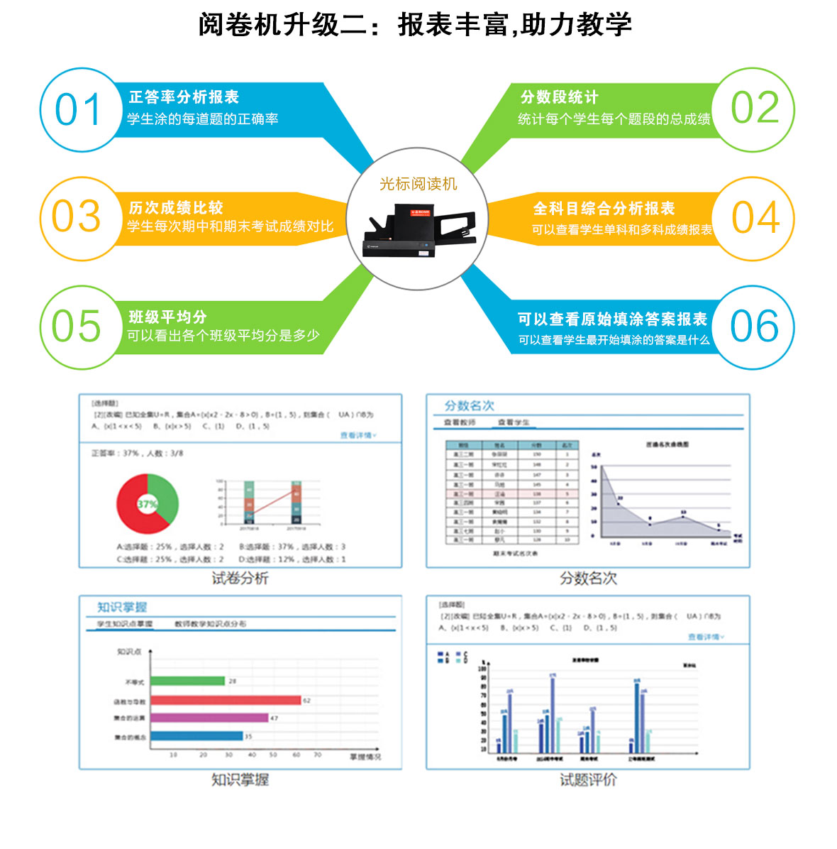 光標閱卷機F50支持單選和七選多,軟件自動調整校對免去手工操作,讀卡速度大于4張/秒
